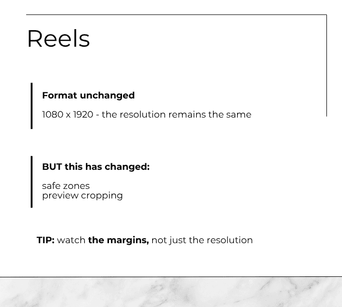 The format stays the same: 1080 × 1920 px. But the way Reels are displayed has changed.