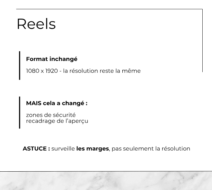 Le format reste en 1080 × 1920 px. Mais la manière dont les Reels sont affichés a changé.